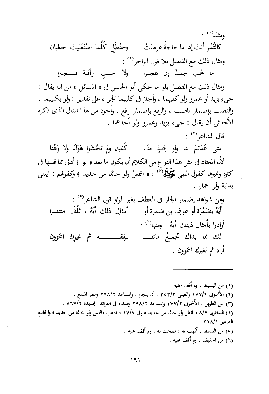 ومثال ذلك مع الفصل بلو ما حكى أبو الحسن في "المسائل" من أنه يقال: جيء يزيد أو عمرو ولو كليهما، وأجاز في كليهما الجر، على تقدير: ولو بكليهما، والنصب بإضمار ناصب، والرفع بإضمار رافع. وأجود من هذا المثال الذي ذكره الأخفش أن يقال: جيء بزيد وعمرو ولو أحدهما.