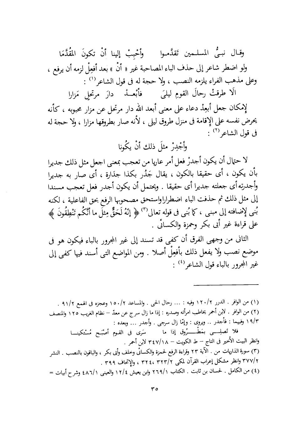 ولو اضطر شاعر إلى حذف الباء المصاحبة غير "أنْ" بعد أفعِلْ لزمه أن يرفع، وعلى مذهب الفراء يلزمه النصب، ولا حجة له في قول الشاعر:
