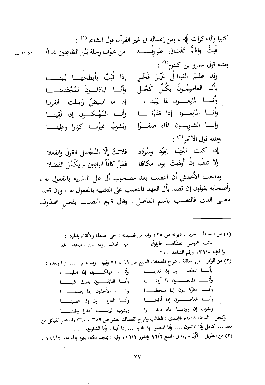 كثيرا والذاكرات)، ومن إعماله في غير القرآن قول الشاعر:
