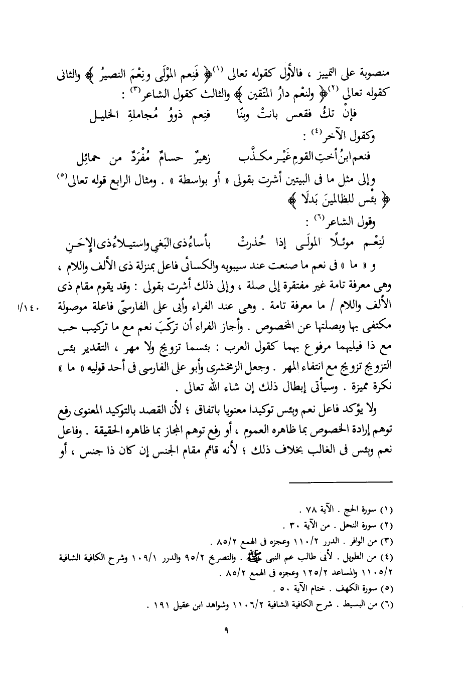 و"ما" في نعم ما صنعت عند سيبويه والكسائي فاعل بمنزلة ذي الألف واللام، وهي معرفة تامة غير مفتقرة إلى صلة، وإلى ذلك أشرت بقولي: وقد يقوم مقام ذي الألف واللام ما معرفة تامة. وهي عند الفراء وأبي علي الفارسيّ فاعلة موصولة مكتفى بها وبصلتها عن المخصوص. وأجاز الفراء أن تركّب نعم مع ما تركيب حب مع ذا فيليهما مرفوع بهما كقول العرب: بئسما تزويج ولا مهر، التقدير بئس التزويج تزويج مع انتفاء المهر. وجعل الزمخشري وأبو علي الفارسي في أحد قوليه "ما" نكرة مميزة. وسيأتي إبطال ذلك إن شاء الله تعالى.