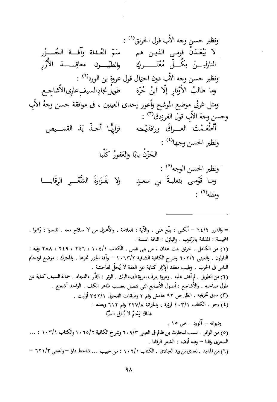 ونظير حسن وجه الأب دون احتمال قول عروة بن الورد:
