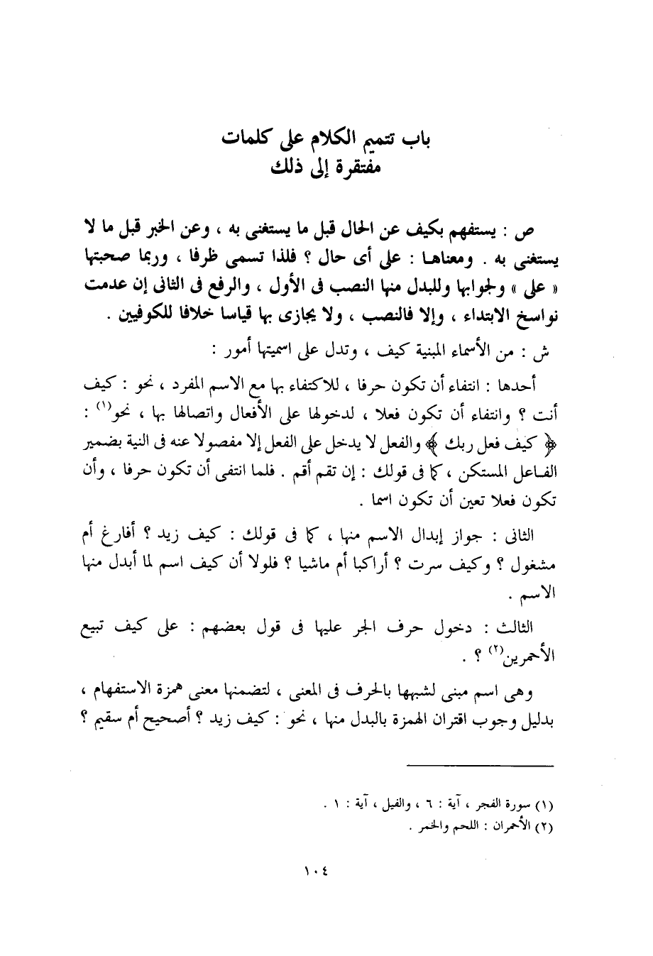 باب تتميم الكلام على كلمات مفتقرة إلى ذلك
