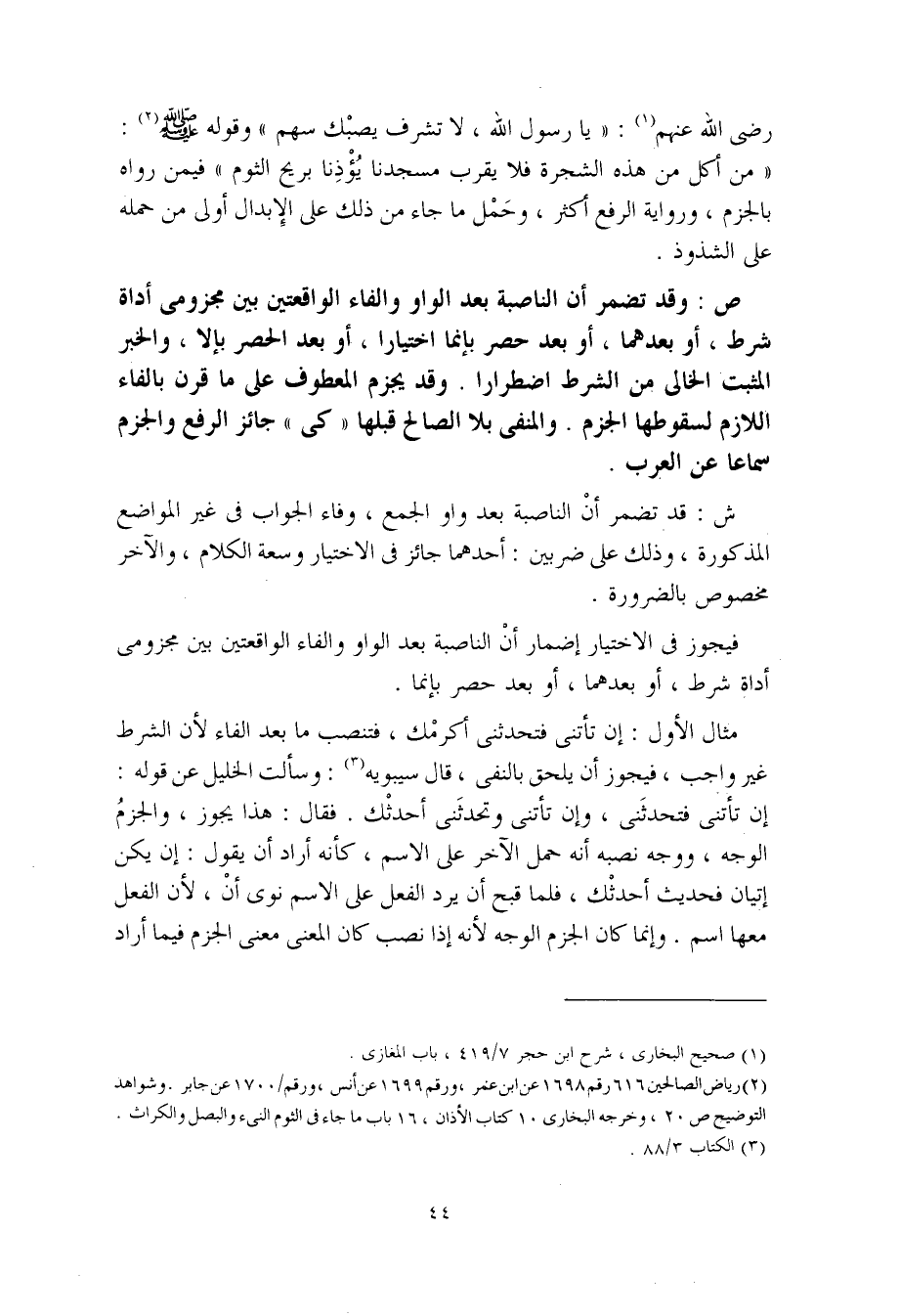 ص: وقد تضمر أن الناصبة بعد الواو والفاء الواقعتين بين مجزومي أداة شرط، أو بعدهما، أو بعد حصر بغنما اختيارا، أو بعد الحصر بإلا، والخبر المثبت الخالي من الشرط اضطرارا. وقد يجزم المعطوف على ما قرن بالفاء اللازم لسقوطها الجزم. والمنفي بلا الصالح قبلها "كي" جائز الرفع والجزم سماعا عن العرب.