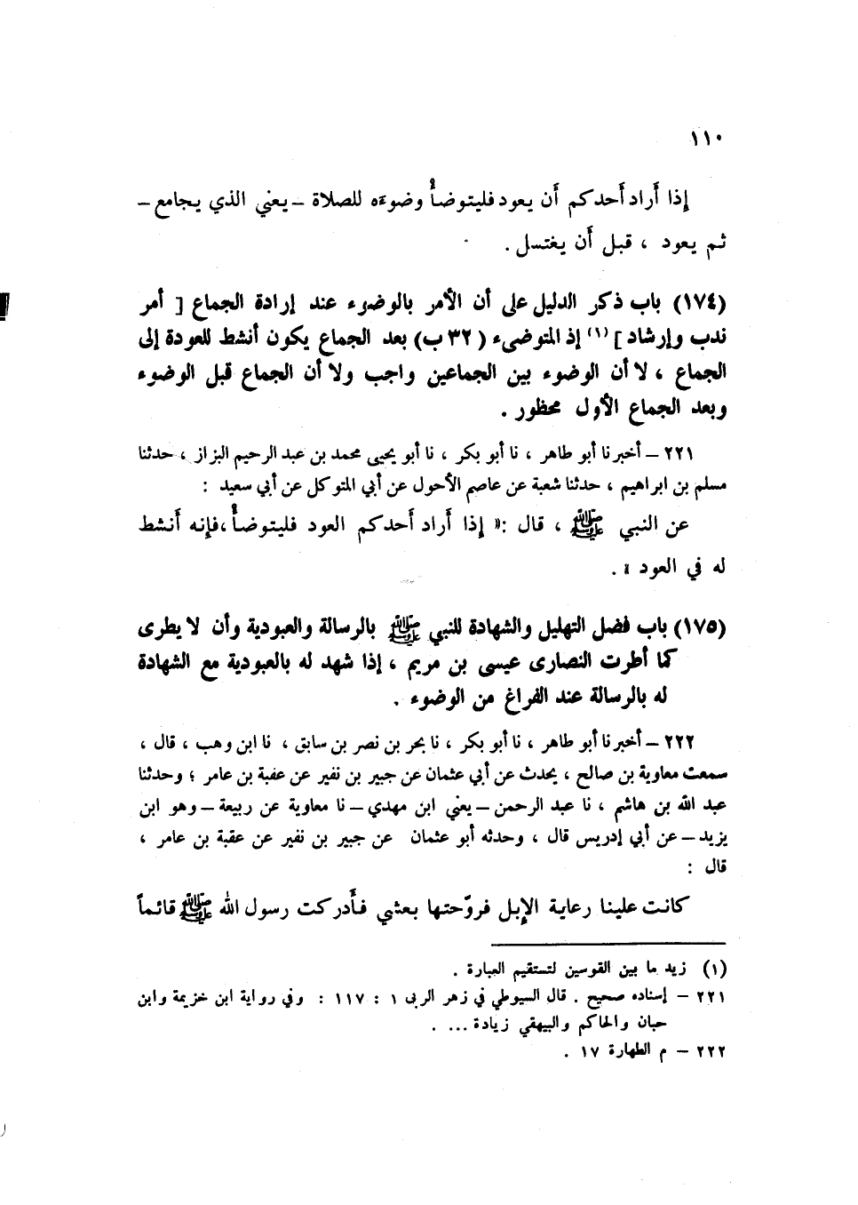 221 - نا أَبُو يَحْيَى مُحَمَّدُ بْنُ عَبْدِ الرَّحِيمِ الْبَزَّازُ، حَدَّثَنَا مُسْلِمُ بْنُ إِبْرَاهِيمَ، حَدَّثَنَا شُعْبَةُ، عَنْ عَاصِمٍ الْأَحْوَلِ، عَنْ أَبِي الْمُتَوَكِّلِ، عَنْ أَبِي سَعِيدٍ، عَنِ النَّبِيِّ صَلَّى اللهُ عَلَيْهِ وَسَلَّمَ قَالَ: «§إِذَا أَرَادَ أَحَدُكُمُ الْعَوْدَ فَلْيَتَوَضَّأْ فَإِنَّهُ أُنْشِطُ لَهُ فِي الْعَوْدِ» K221 - قال الأعظمي: إسناده صحيح