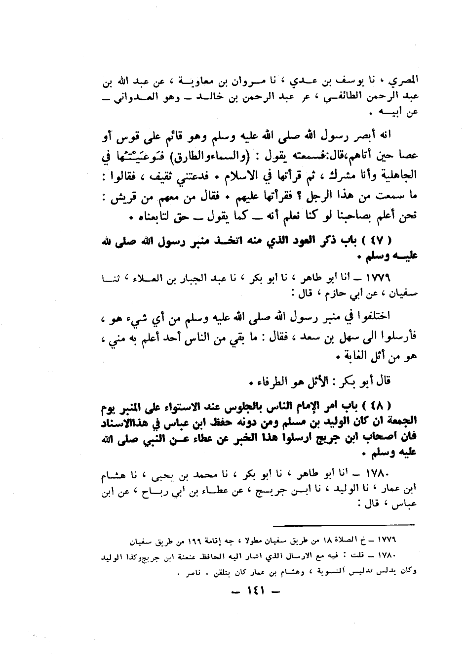 1779 - نا عَبْدُ الْجَبَّارِ بْنُ الْعَلَاءِ، ثنا سُفْيَانُ، عَنْ أَبِي حَازِمٍ قَالَ: اخْتَلَفُوا فِي مِنْبَرِ رَسُولِ اللَّهِ صَلَّى اللهُ عَلَيْهِ وَسَلَّمَ مِنْ أَيِّ شَيْءٍ هُوَ؟ فَأَرْسَلُوا إِلَى سَهْلِ بْنِ سَعْدٍ , فَقَالَ: «§مَا بَقِيَ مِنَ النَّاسِ أَحَدٌ أَعْلَمَ بِهِ مِنِّي , هُوَ مِنْ أَثْلِ الْغَابَةِ» . قَالَ أَبُو بَكْرٍ: «الْأَثْلُ هُوَ الطَّرْفَاءُ»