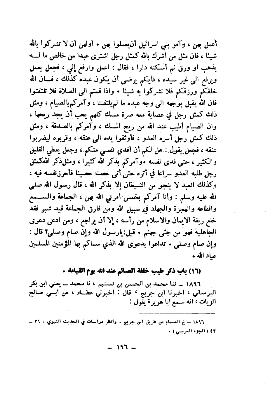 §بَابُ ذِكْرِ طِيبِ خِلْفَةِ الصَّائِمِ عِنْدَ اللَّهِ يَوْمَ الْقِيَامَةِ