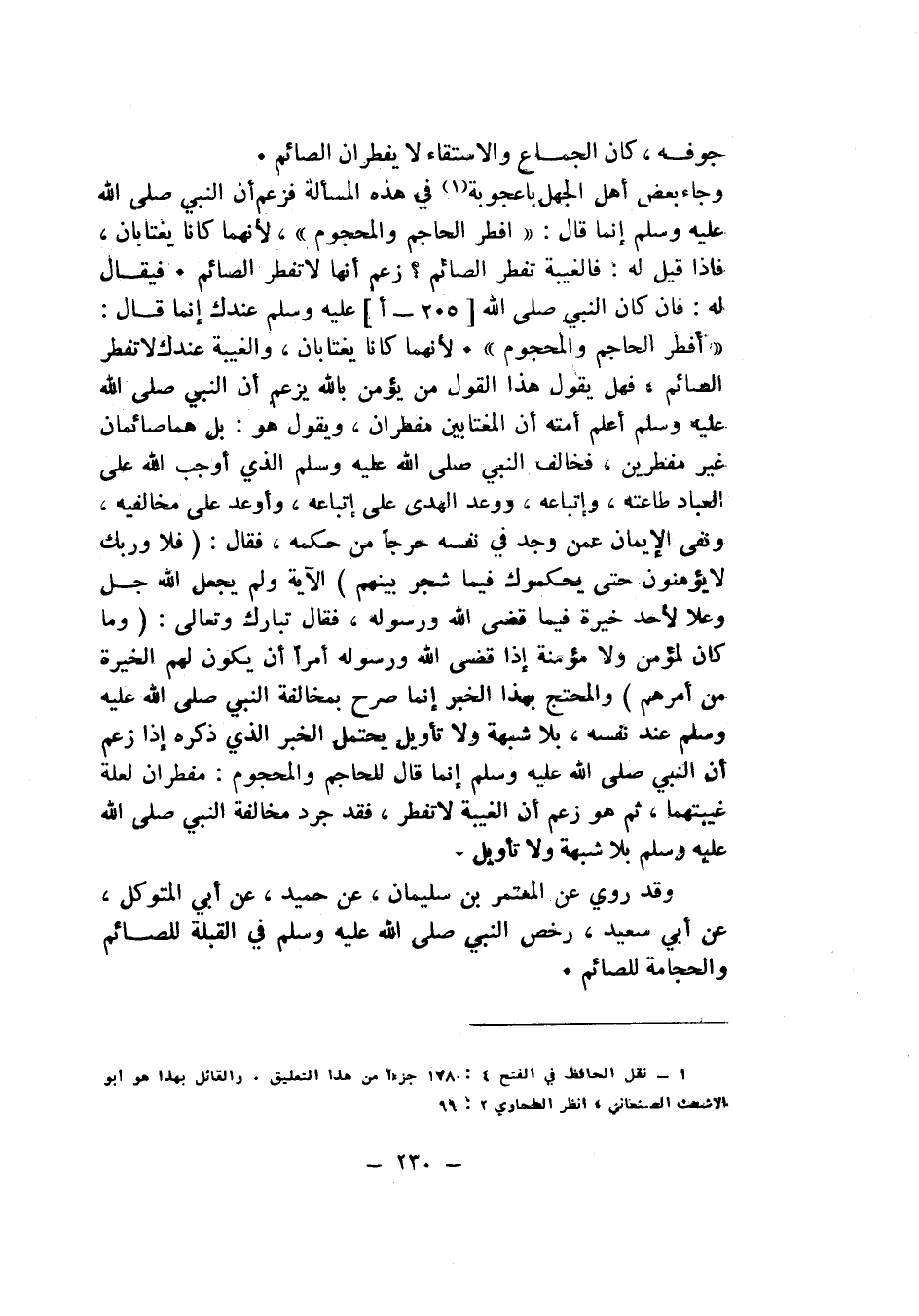 1967 - وَقَدْ رُوِيَ عَنِ الْمُعْتَمِرِ بْنِ سُلَيْمَانَ، عَنْ حُمَيْدٍ، عَنْ أَبِي الْمُتَوَكِّلِ، عَنْ أَبِي سَعِيدٍ: «§رَخَّصَ النَّبِيُّ صَلَّى اللهُ عَلَيْهِ وَسَلَّمَ فِي الْقُبْلَةِ لِلصَّائِمِ» وَالْحِجَامَةِ لِلصَّائِمِ حَدَّثَنَا يَعْقُوبُ بْنُ إِبْرَاهِيمَ الدَّوْرَقِيُّ، ثنا الْمُعْتَمِرُ، وَهَذِهِ اللَّفْظَةُ وَالْحِجَامَةِ لِلصَّائِمِ: إِنَّمَا هُوَ مِنْ قَوْلِ أَبِي سَعِيدٍ الْخُدْرِيِّ، لَا عَنِ النَّبِيِّ صَلَّى اللهُ عَلَيْهِ وَسَلَّمَ، أُدْرِجَ فِي الْخَبَرِ لَعَلَّ الْمُعْتَمِرَ حَدَّثَ بِهَذَا حِفْظًا فَأَدْرَجَ هَذِهِ الْكَلِمَةَ فِي خَبَرِ النَّبِيِّ صَلَّى اللهُ عَلَيْهِ وَسَلَّمَ , أَوْ قَالَ: قَالَ أَبُو سَعِيدٍ: وَرَخَّصَ فِي الْحِجَامَةِ لِلصَّائِمِ، فَلَمْ يُضْبَطْ عَنْهُ: قَالَ أَبُو سَعِيدٍ، فَأُدْرِجَ هَذَا الْقَوْلُ فِي الْخَبَرِK1967 - قال الألباني: إسناده صحيح وإعلال المصنف له بالوقف مدفوع بمتابعةعبد الوهاب بن عطاء للمعتمر وبأن له طريقا أخرى عن أبي المتوكل به مرفوعا وبيانه في الإرواء 921