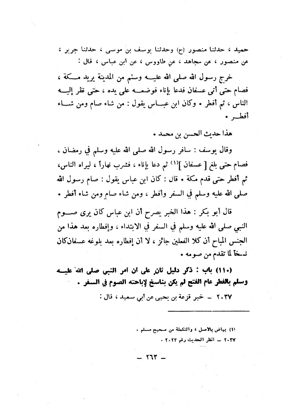 §بَابُ ذِكْرِ دَلِيلٍ ثَانٍ عَلَى أَنَّ أَمْرَ النَّبِيِّ صَلَّى اللهُ عَلَيْهِ وَسَلَّمَ بِالْفِطْرِ عَامَ الْفَتْحِ لَمْ يَكُنْ بِنَاسِخٍ لِإِبَاحَتِهِ الصَّوْمَ فِي السَّفَرِ "