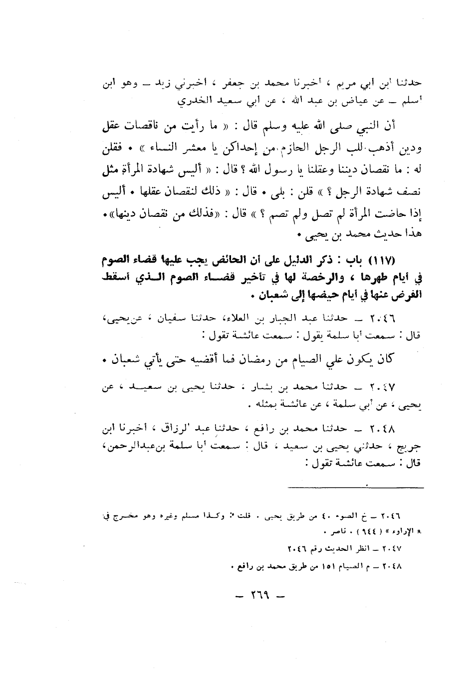 §بَابُ ذِكْرِ الدَّلِيلِ عَلَى أَنَّ الْحَائِضَ يَجِبُ عَلَيْهَا قَضَاءُ الصَّوْمِ فِي أَيَّامِ طُهْرِهَا «وَالرُّخْصَةِ لَهَا فِي تَأْخِيرِ قَضَاءِ الصَّوْمِ الَّذِي أَسْقَطَ الْفَرْضَ عَنْهَا فِي أَيَّامِ حَيْضِهَا إِلَى شَعْبَانَ»