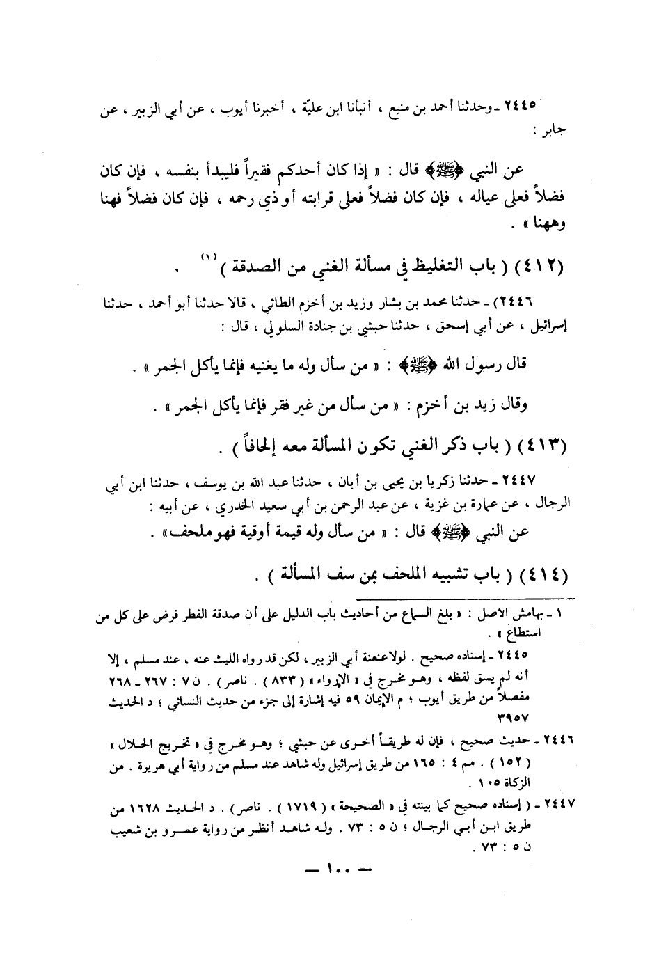 2447 - حَدَّثَنَا زَكَرِيَّا بْنُ يَحْيَى بْنِ أَبَانَ، حَدَّثَنَا عَبْدُ اللَّهِ بْنُ يُوسُفَ، حَدَّثَنَا ابْنُ أَبِي الرِّجَالِ، عَنْ عُمَارَةَ بْنِ غَزِيَّةَ، عَنْ عَبْدِ الرَّحْمَنِ بْنِ أَبِي سَعِيدٍ الْخُدْرِيِّ، عَنْ أَبِيهِ: عَنِ النَّبِيِّ صَلَّى اللهُ عَلَيْهِ وَسَلَّمَ قَالَ: «§مَنْ سَأَلَ وَلَهُ قِيمَةُ أُوقِيَّةٍ، فَهُوَ مُلْحِفٌ» K2447 - قال الألباني: إسناده صحيح كما في الصحيحة 1719