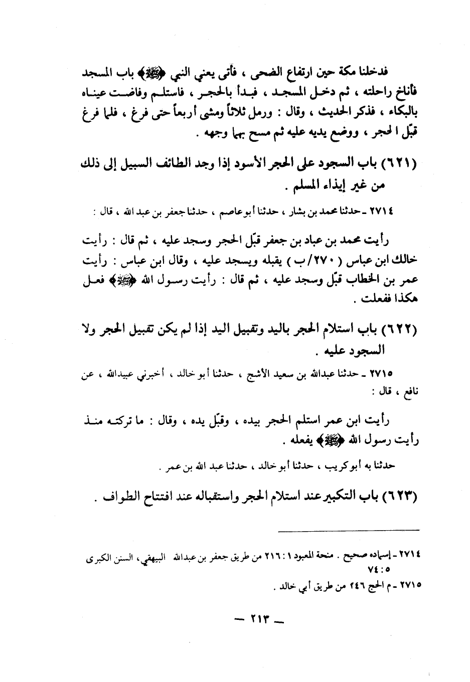 2714 - حَدَّثَنَا مُحَمَّدُ بْنُ بَشَّارٍ، حَدَّثَنَا أَبُو عَاصِمٍ، حَدَّثَنِا جَعْفَرُ بْنُ عَبْدِ اللَّهِ قَالَ: رَأَيْتُ مُحَمَّدَ بْنَ عَبَّادِ بْنِ جَعْفَرٍ قَبَّلَ الْحَجَرَ وَسَجَدَ عَلَيْهِ، ثُمَّ قَالَ: رَأَيْتُ خَالَكَ ابْنَ عَبَّاسٍ يُقَبِّلُهُ وَيَسْجُدُ عَلَيْهِ، وَقَالَ ابْنُ عَبَّاسٍ رَأَيْتُ عُمَرَ بْنَ الْخَطَّابِ قَبَّلَ وَسَجَدَ عَلَيْهِ، ثُمَّ قَالَ: §رَأَيْتُ رَسُولَ اللَّهِ صَلَّى اللهُ عَلَيْهِ وَسَلَّمَ فَعَلَ هَكَذَا، فَفَعَلْتُ "K2714 - قال الأعظمي: إسناده صحيح