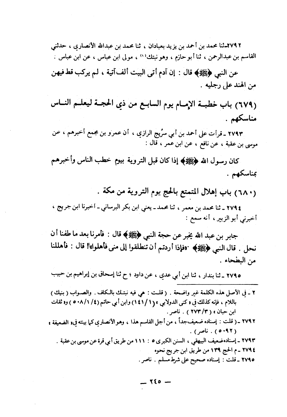 2793 - قَرَأْتُ عَلَى أَحْمَدَ بْنِ أَبِي سُرَيْجٍ الرَّازِيُّ أَنَّ عَمْرَو بْنَ مُجَمِّعٍ أَخْبَرَهُمْ، عَنْ مُوسَى بْنِ عُقْبَةَ، عَنْ نَافِعٍ، عَنِ ابْنِ عُمَرَ قَالَ: كَانَ رَسُولُ اللَّهِ صَلَّى اللهُ عَلَيْهِ وَسَلَّمَ §إِذَا كَانَ قَبْلَ التَّرْوِيَةِ بِيَوْمٍ خَطَبَ النَّاسَ وَأَخْبَرَهُمْ بِمَنَاسِكِهِمْK2793 - قال الأعظمي: إسناده ضعيف
