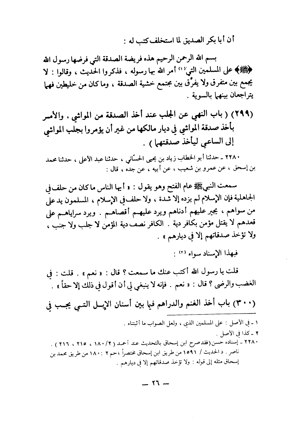 §بَابُ أَخْذِ الْغَنَمِ وَالدَّرَاهِمِ فِيمَا بَيْنَ أَسْنَانِ الْإِبِلِ الَّتِي يَجِبُ فِي الصَّدَقَةِ إِذَا لَمْ يُوجَدِ السِّنُ الْوَاجِبَةُ فِي الْإِبِلِ، وَالْبَيَانِ ضِدَّ قَوْلِ مَنْ زَعَمَ أَنَّ بَيْنَ السِّنَّيْينِ قَدْرُ قِيمَةِ مَا بَيْنَهُمَا «وَهَذَا الْقَوْلُ إِغْفَالٌ مِنْ قَائِلِهِ، أَوْ هُوَ خِلَافُ سُنَّةِ النَّبِيِّ صَلَّى اللهُ عَلَيْهِ وَسَلَّمَ وَكُلُّ قَوْلٍ خِلَافَ سُنَّتِهِ فَمَرْدُودٌ غَيْرُ مَقْبُولٍ»