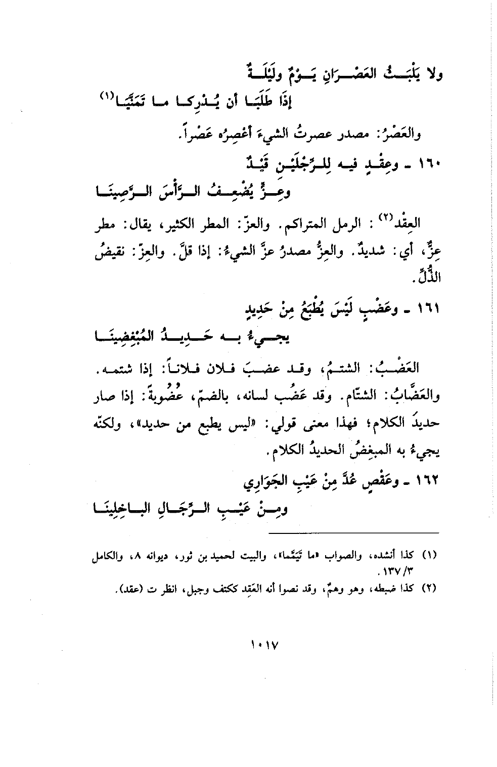 160 - وعقد فيه للرجلين قيد .... وعز يضعف الرأس الرصينا