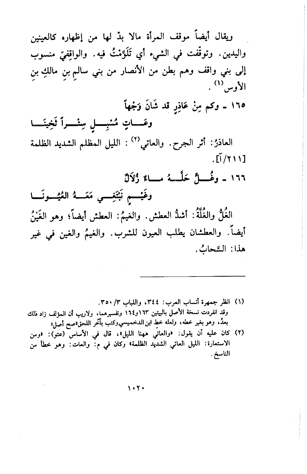 العاذر: أثر الجرح. والعاتي: الليل المظلم الشديد الظلمة [211/آ].