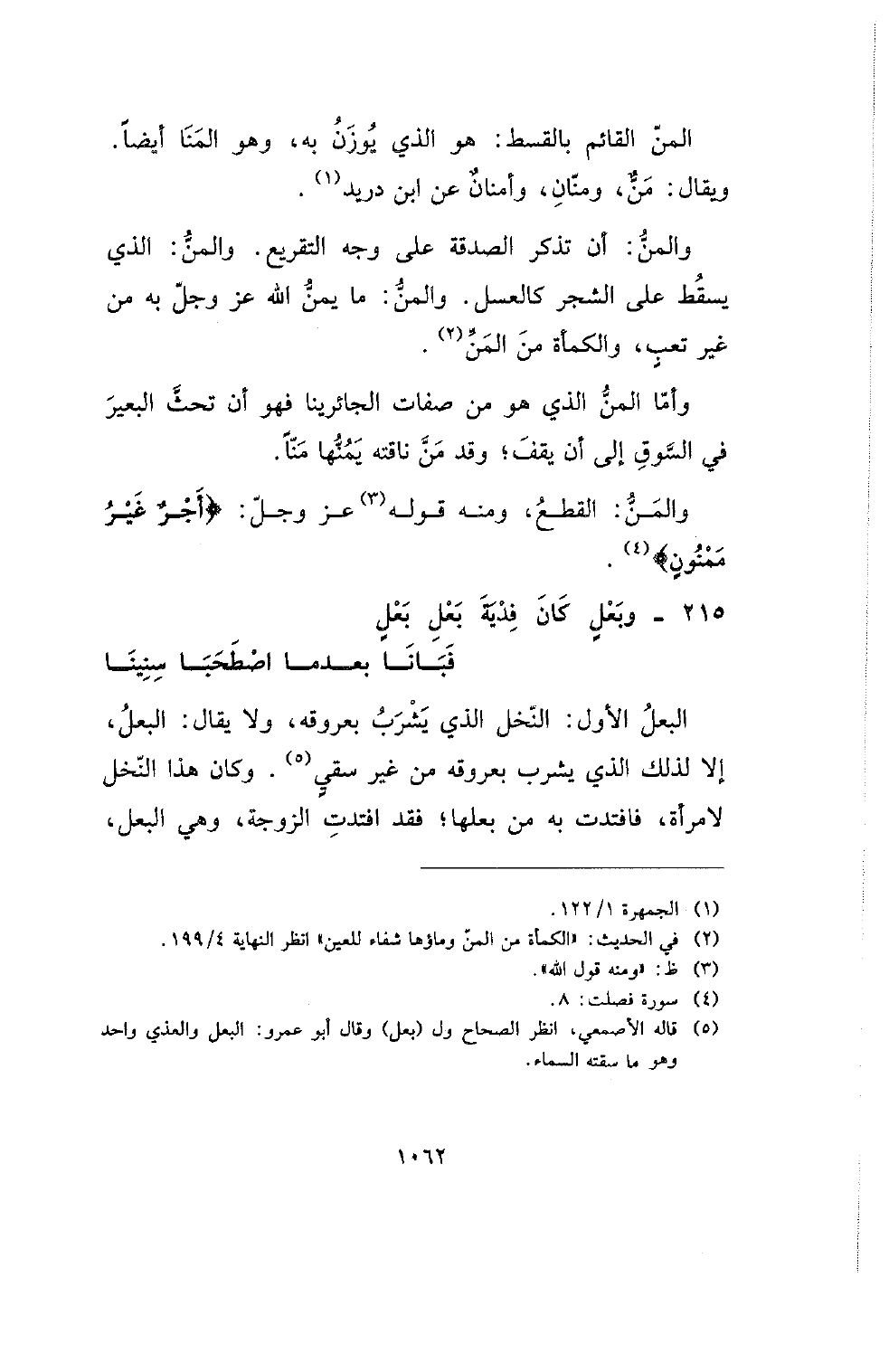 المن القائم بالقسط: هو الذي يوزن به، وهو المنا أيضا. ويقال: من، ومنان، وأمنان عن ابن دريد.