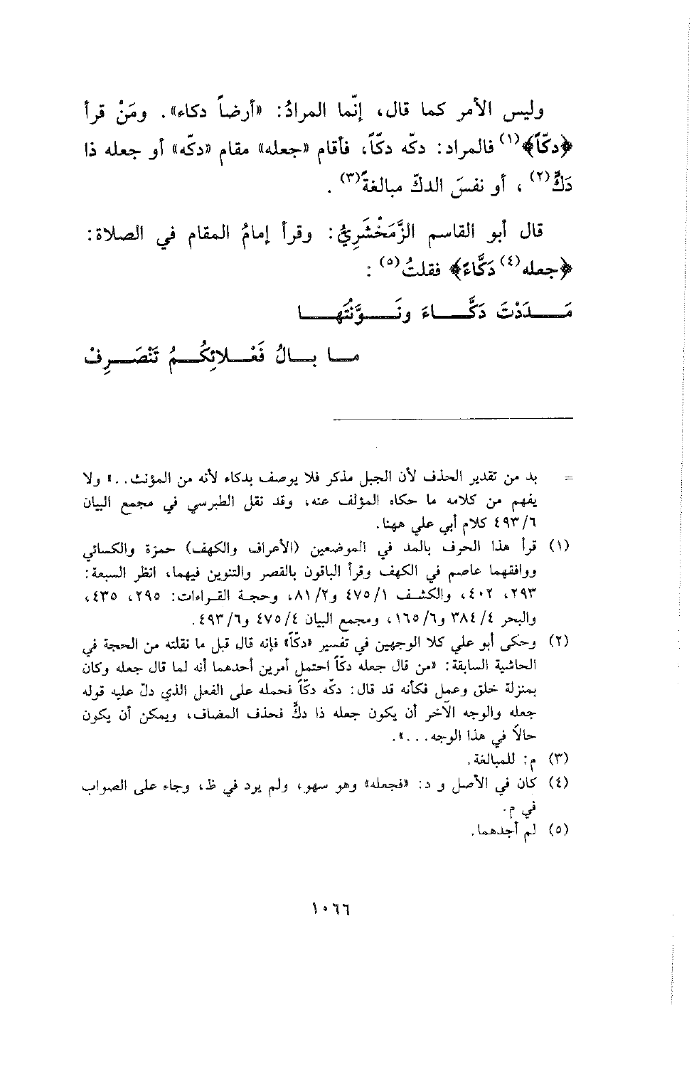 قال أبو القاسم الزمخشري: وقرأ إمام المقام في الصلاة: {جعله دكاء} فقلت: