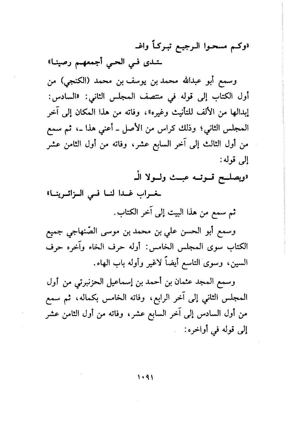 وسمع أبو الحسن علي بن محمد بن موسى الصنهاجي جميع الكتاب سوى المجلس الخامس: أوله حرف الخاء وآخره حرف السين، وسوى التاسع أيضا لا غير وأوله باب الهاء.
