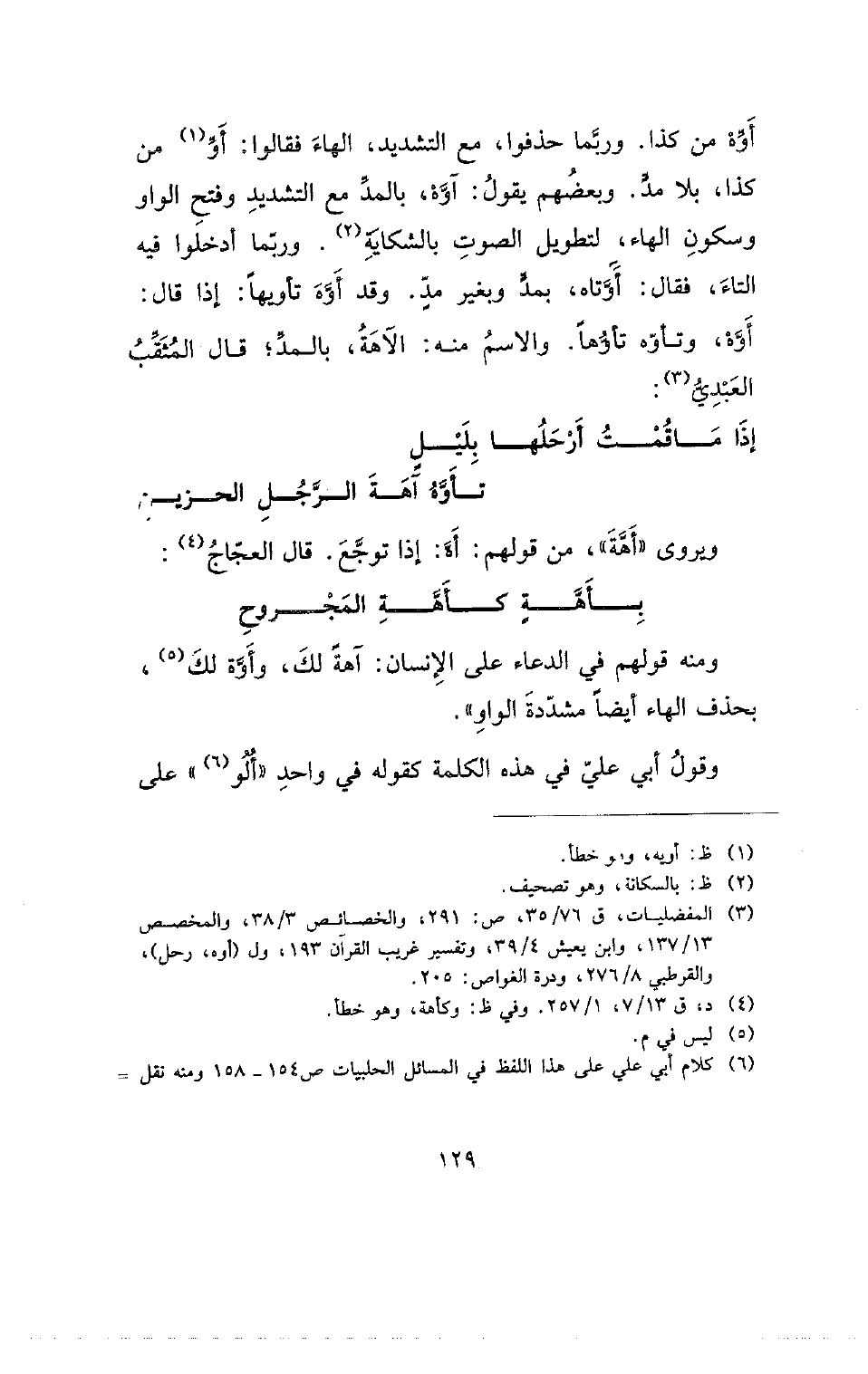 ويروى (أهة)، من قولهم: أه، إذا توجع. قال العجاج:
