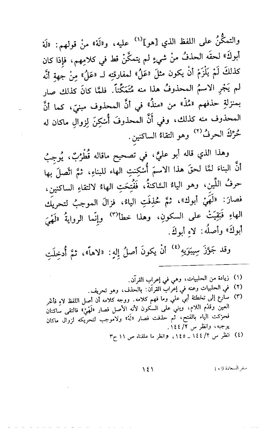 وهذا الذي قاله أبو علي، في تصحيح ما قاله قطرب، يوجب أن البناء لما لحق هذا الاسم أسكنت الهاء للبناء، ثم اتصل بها حرف اللين، وهو الياء الساكنة، ففتحت الهاء لالتقاء الساكنين، فصار: (لهي أبوك)، ثم حذفت الياء، فزال الموجب لتحريك الهاء فبقيت على السكون، وهذا خطأ وإنما الرواية (لهي أبوك) وأصله: لاه أبوك.