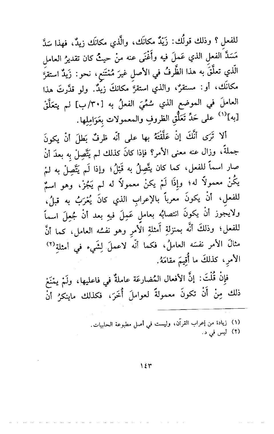 للفعل؟ وذلك قولك: زيد مكانك، والذي مكانك زيد، فهذا سد مسد الفعل الذي عمل فيه وأغنى عنه من حيث كان تقدير العامل الذي تعلق به هذا الظرف في الأصل غير ممتنع، نحو: زيد استقر مكانك، أو: مستقر، والذي استقر مكانك زيد. ولو قدرت هذا العامل في الموضع الذي سمي الفعل به [30/ب] لم يتعلق [به] على حد تعلق الظروف والمعمولات بعواملها.