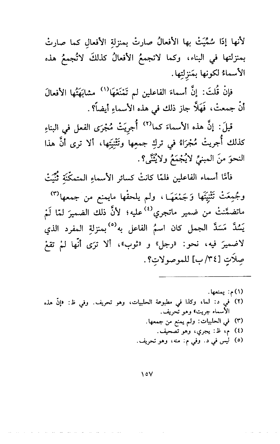 فأما أسماء الفاعلين فلما كانت كسائر الأسماء المتمكنة ثنيت وجمعت تثنيتها وجمعها، ولم يلحقها ما يمنه من جمعها ما تضمنت من ضمير ما تجرى عليه؛ لأن ذلك الضمير لما لم يسد مسد الجمل كان اسم الفاعل به بمنزلة المفرد الذي لا ضمير فيه، نحو: (رجل) و (ثوب)، ألا ترى أنها لم تقع صلات [34/ب] للموصولات؟.