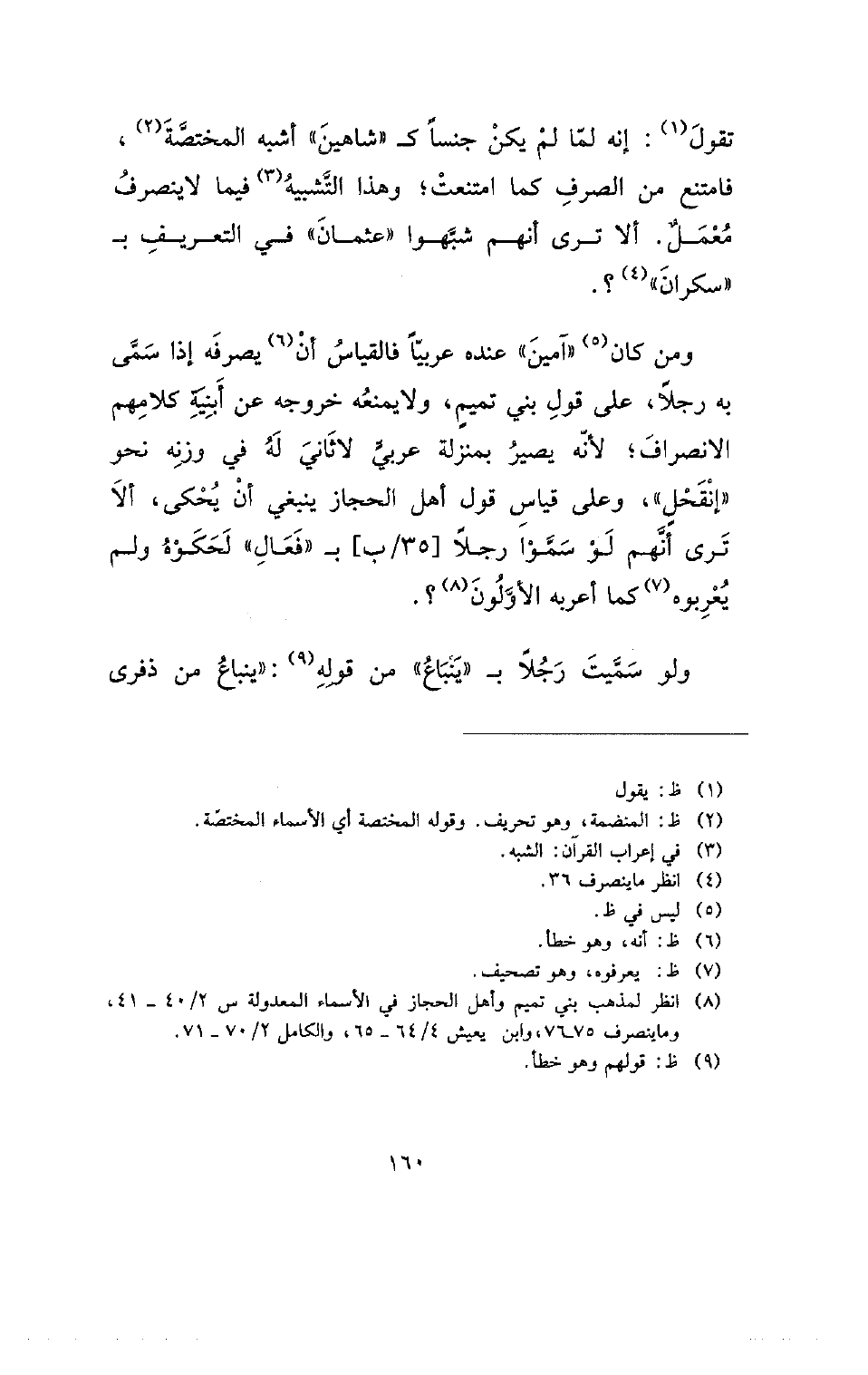 تقول: إنه لما لم يكن جنسا كـ (شاهين) أشبه المختصة، فامتنع من الصرف كما امتنعت؛ وهذا التشبيه فيما لا ينصرف معمل. ألا ترى أنهم شبهوا (عثمان) في التعريف بـ (سكران)؟.