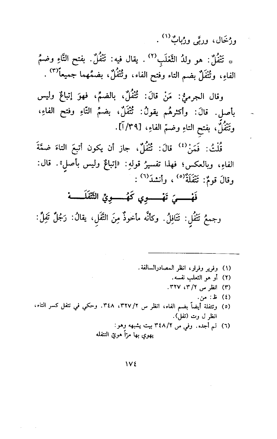 * تتفل: هو ولد الثعلب. يقال فيه: تتفل. بفتح التاء وضم الفاء، وتتفل بضم التاء وفتح الفاء، وتتفل، بضمها جميعا.