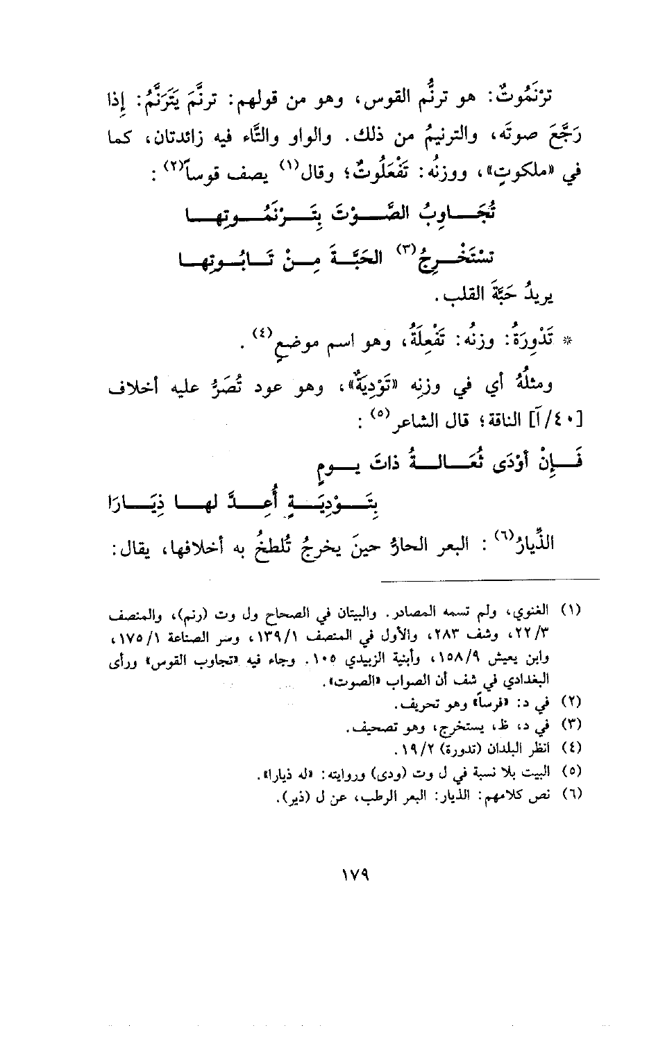 ترنموت: هو ترنم القوس، وهو من قولهم: ترنم يترنم: إذا رجع صوته، والترنيم من ذلك. والواو والتاء فيه زائدتان، كما في (ملكوت)، ووزنه: تفعلوت؛ وقال يصف قوسا:
