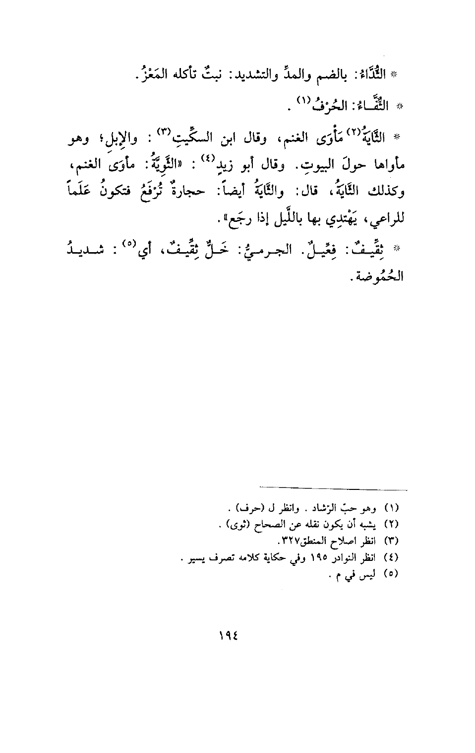 * الثاية مأوى الغنم، وقال ابن السكيت: والإبل؛ وهو مأواها حول البيت. وقال أبو زيد: (الثوية: مأوى الغنم، وكذلك الثاية، قال: والثاية أيضا: حجارة ترفع فتكون علما للراعي، يهتدي بها بالليل إذا رجع).