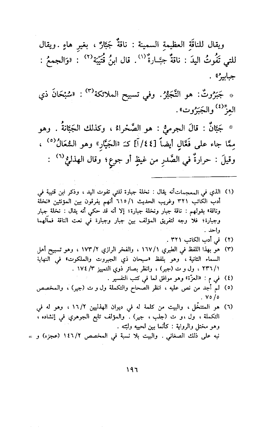 ويقال للناقة العظيمة السمينة: ناقة جبار، بغير هاء. ويقال للتي تفوت اليد: ناقة جبارة. قال ابن قتيبة: (والجوع: جبابير).
