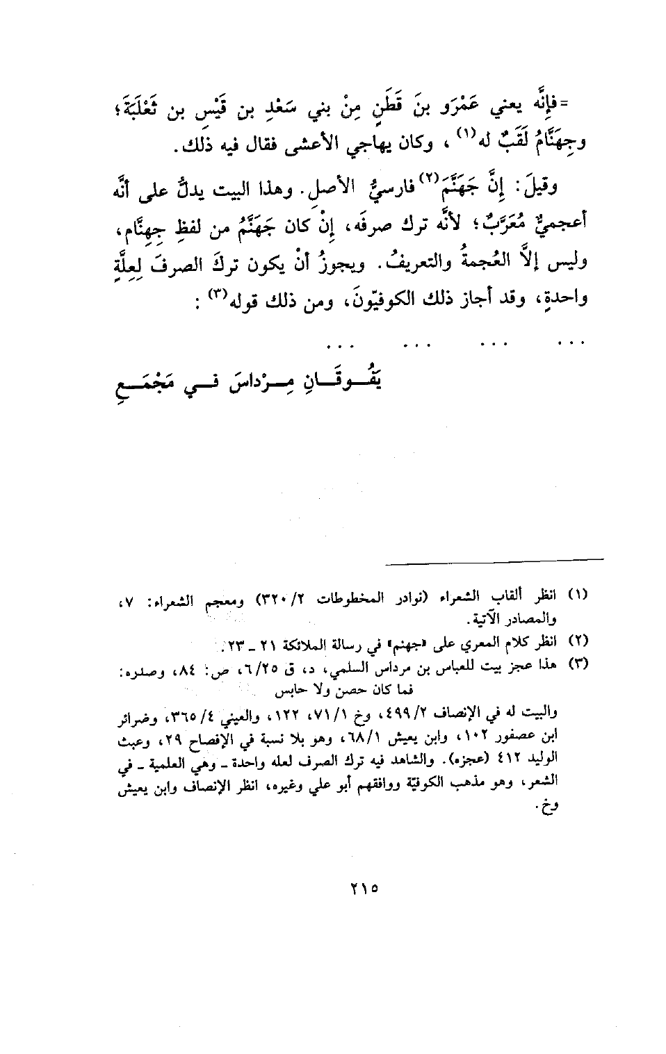 فإنه يعني عمرو بن قطن من بني سعد بن قيس بن ثعلبة؛ وجهنام لقب له، وكان يهاجي الأعشى فقال فيه ذلك.