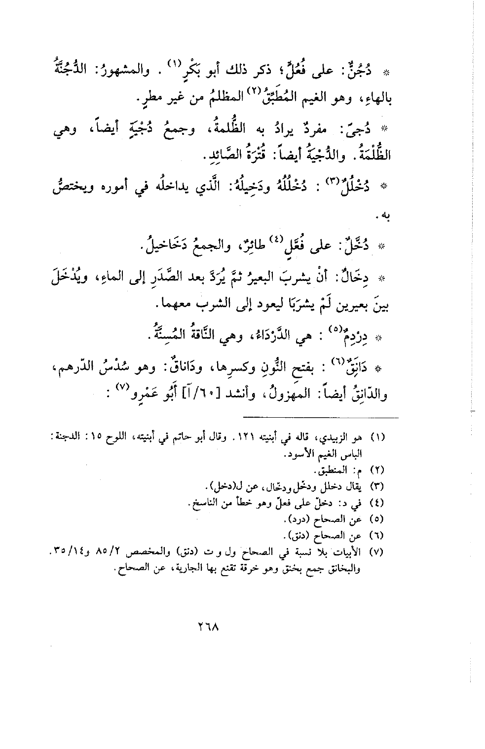 * دجى: مفرد يراد به الظلمة، وجمع دجية أيضا، وهي الظلمة. والدجية أيضا: قترة الصائد.