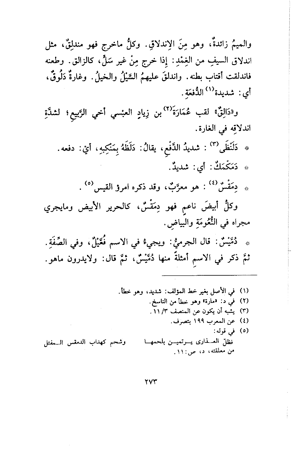 * دميس: قال الجرمي: ويجيء في الاسم فعيل، وفي الصفة. ثم ذكر في الاسم أمثلة منها دميس، ثم قال: ولا يدرون ما هو.