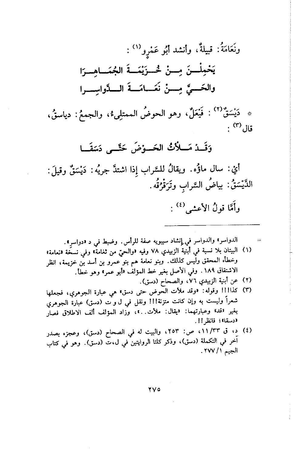 * ديسق: فيعل، وهو الحوض الممتلئ، والجمع: دياسق، قال: