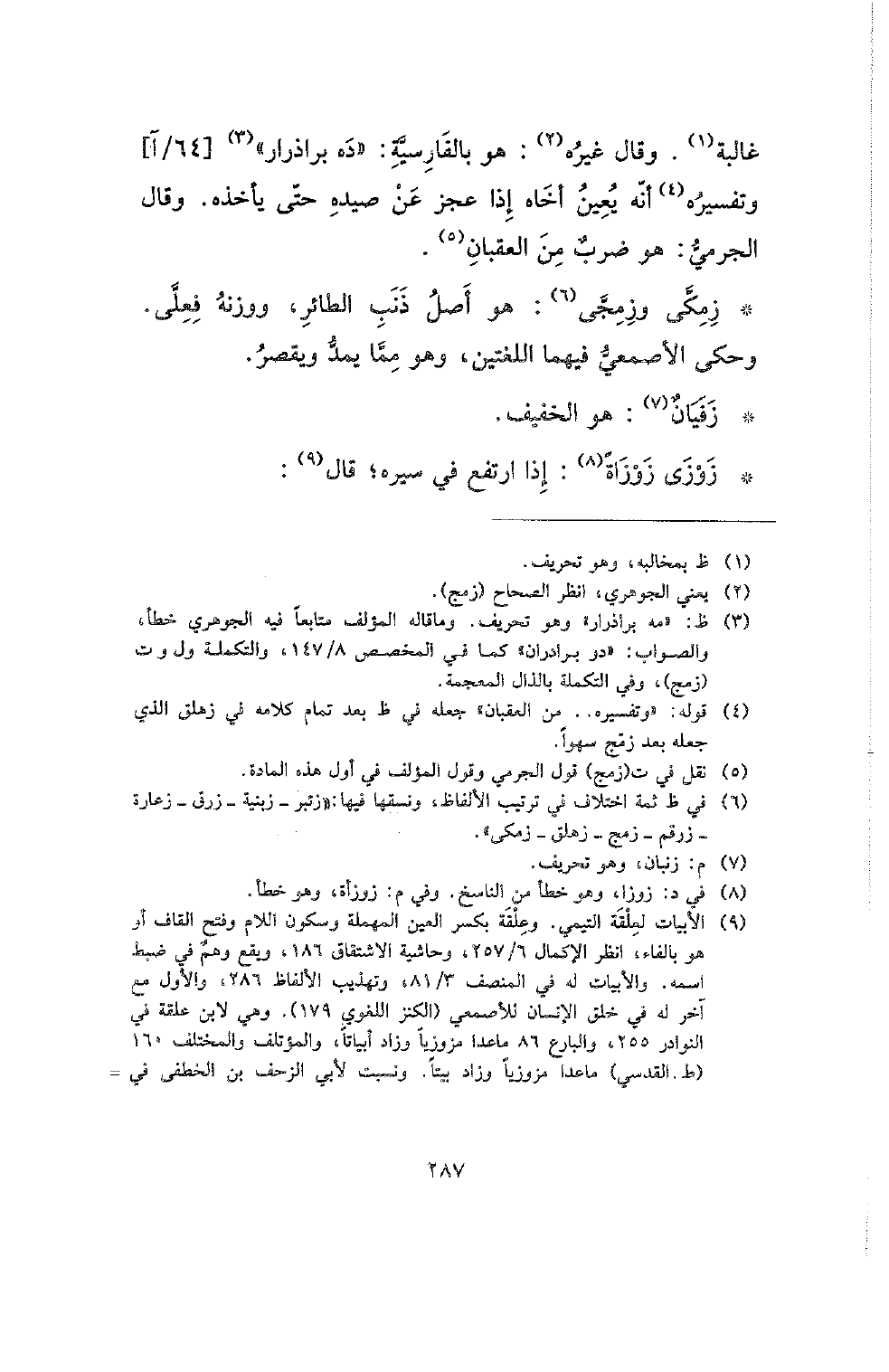 * زمكى وزمجى: هو أصل ذنب الطائر، ووزنه فعلى. وحكى الأصمعي فيهما اللغتين، وهو مما يمد ويقصر.