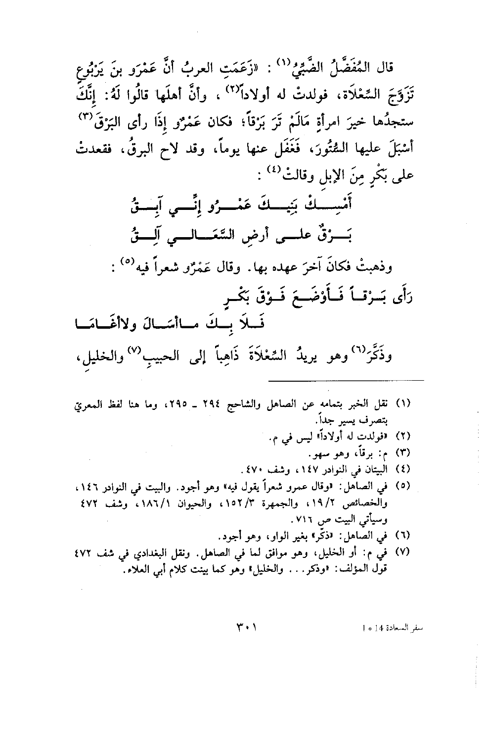 وذكر هو يريد السعلاة ذاهبا إلى الحبيب والخليل،