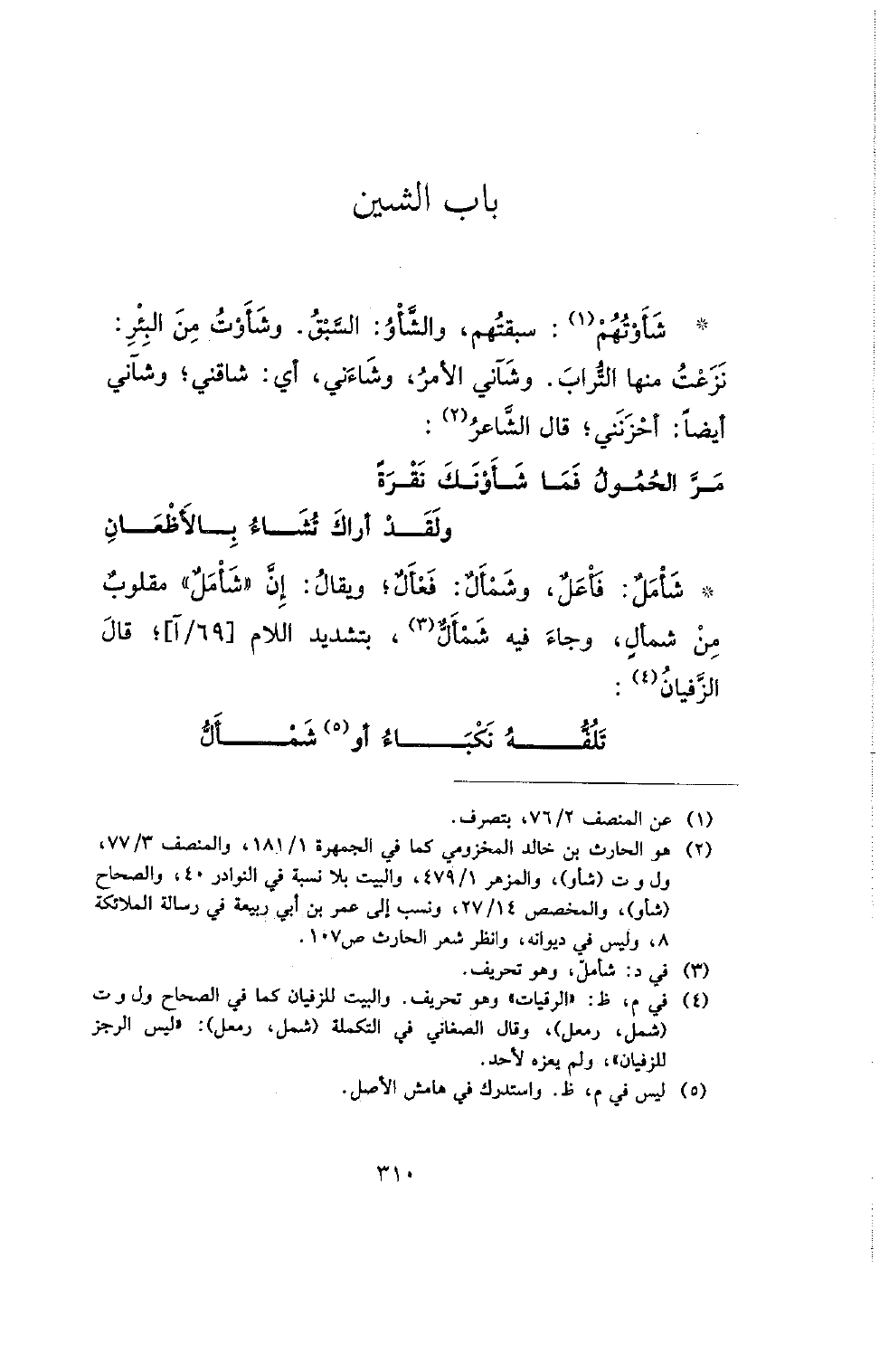*شأمل: فأعل، وشمأل: فعأل؛ ويقال: إن (شأمل) مقلوب من شمأل، وجاء فيه شمأل، بتشديد اللام [69/آ]؛ قال الزفيان:
