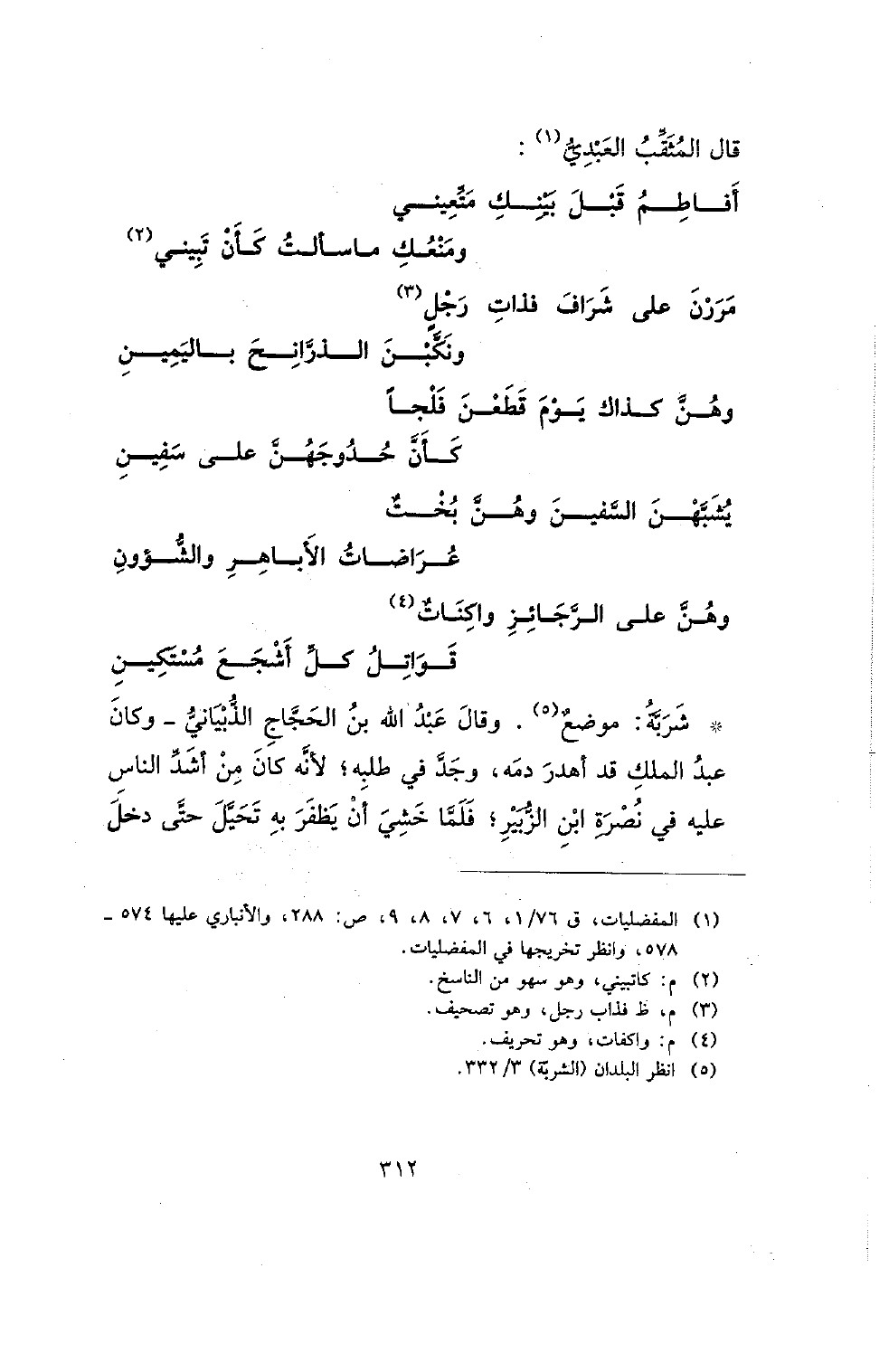 وهن كذلك يوم قطعن فلجا .... كأن حدوجهن على سفين