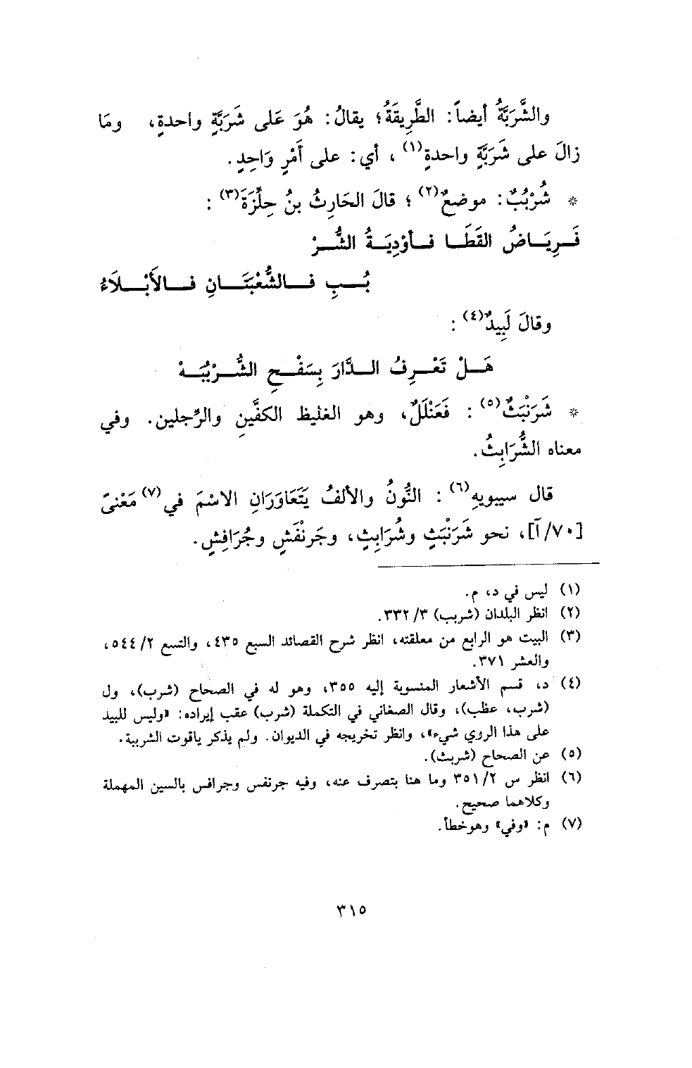 قال سيبويه: النون والألف يتعاوران الاسم في معنى [70/آ]، نحو شرنبث وشرابث، وجرنفش وجرافش.