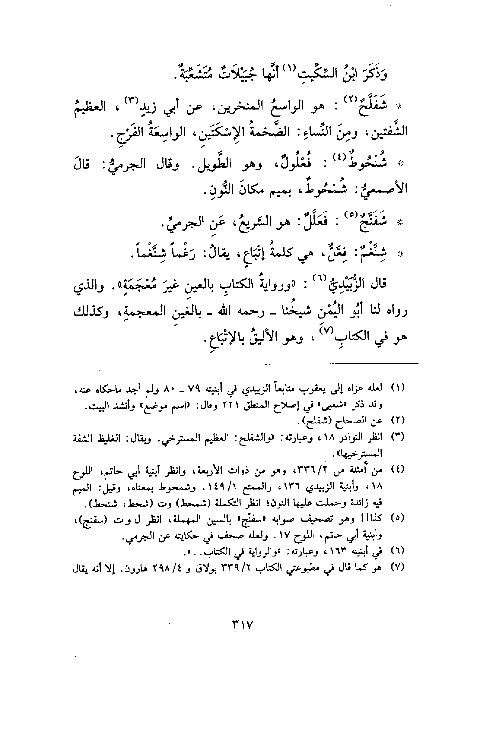 قال الزبيدي: ورواية الكتاب بالعين غير معجمة). والذي رواه لنا أبو اليمن شيخنا- رحمه الله- بالغين المعجمة، وكذلك هو في الكتاب، وهو الأليق بالإتباع.