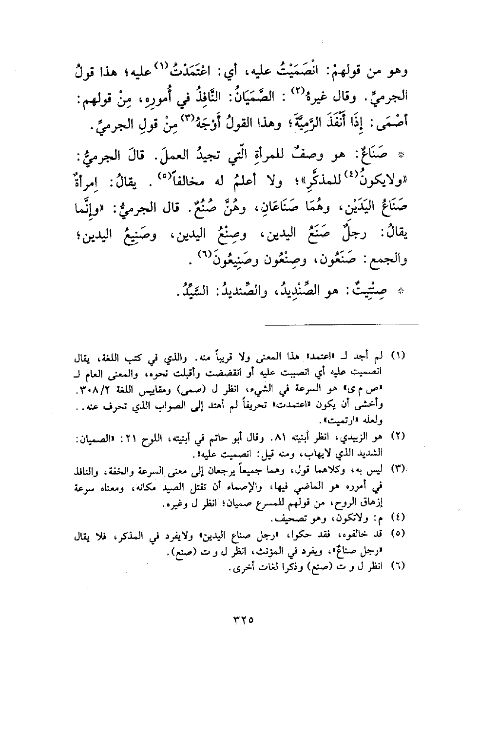 وهو من قولهم: انصميت عليه، أي: اعتمدت عليه؛ هذا قول الجرمي. وقال غيره: الصميان: النافذ في أموره، من قولهم: أصمى: إذا أنفذ الرمية؛ وهذا القول أوجه من قول الجرمي.