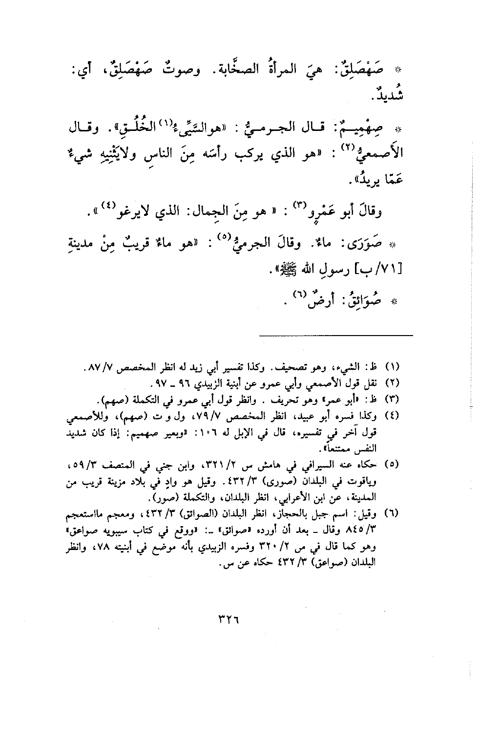 * صهصلق: هي المرأة الصخابة. وصوت صهصلق، أي: شديد.