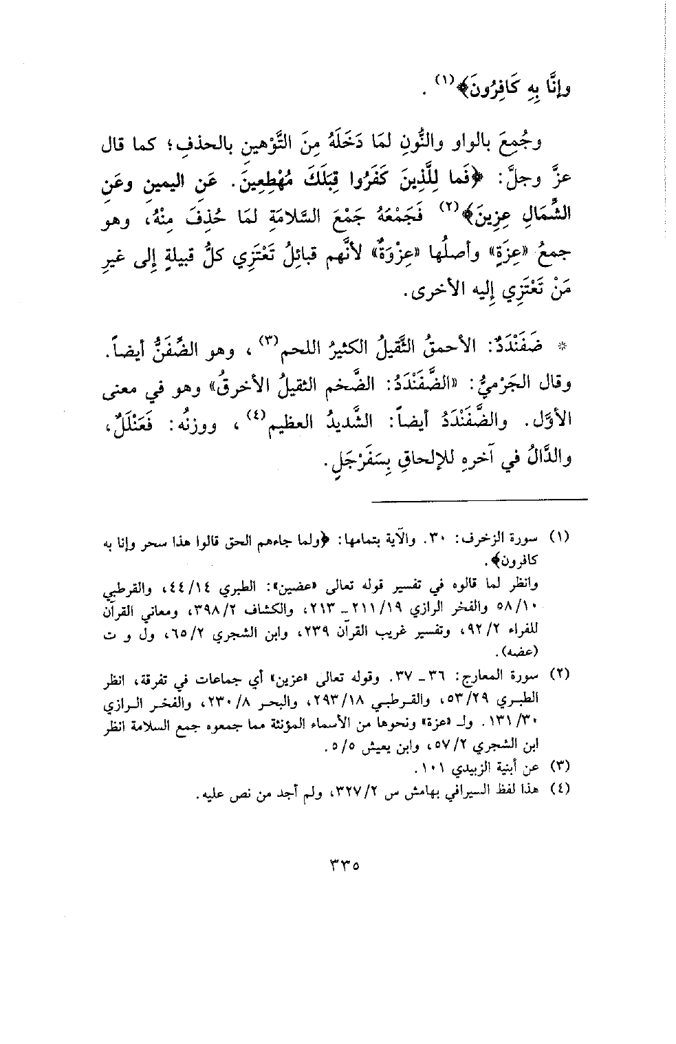 وجمع بالواو والنون لما دخله من التوهين بالحذف؛ كما قال عز وجل: {فما للذين كفروا قبلك مهطعين. عن اليمين وعن الشمال عزين} فجمعه جمع السلامة لما حذف منه، وهو جمع (عزة) وأصلها (عزوة) لأنهم قبائل تعتزي كل قبيلة إلى غير من تعتزي إليه الأخرى.