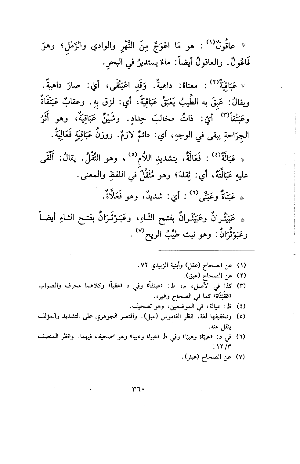 *عبالة: فعالة، بتشديد اللام، وهو الثقل. يقال: ألقى عليه عبالته، أي: ثقله؛ وهو مثقل في اللفظ والمعنى.