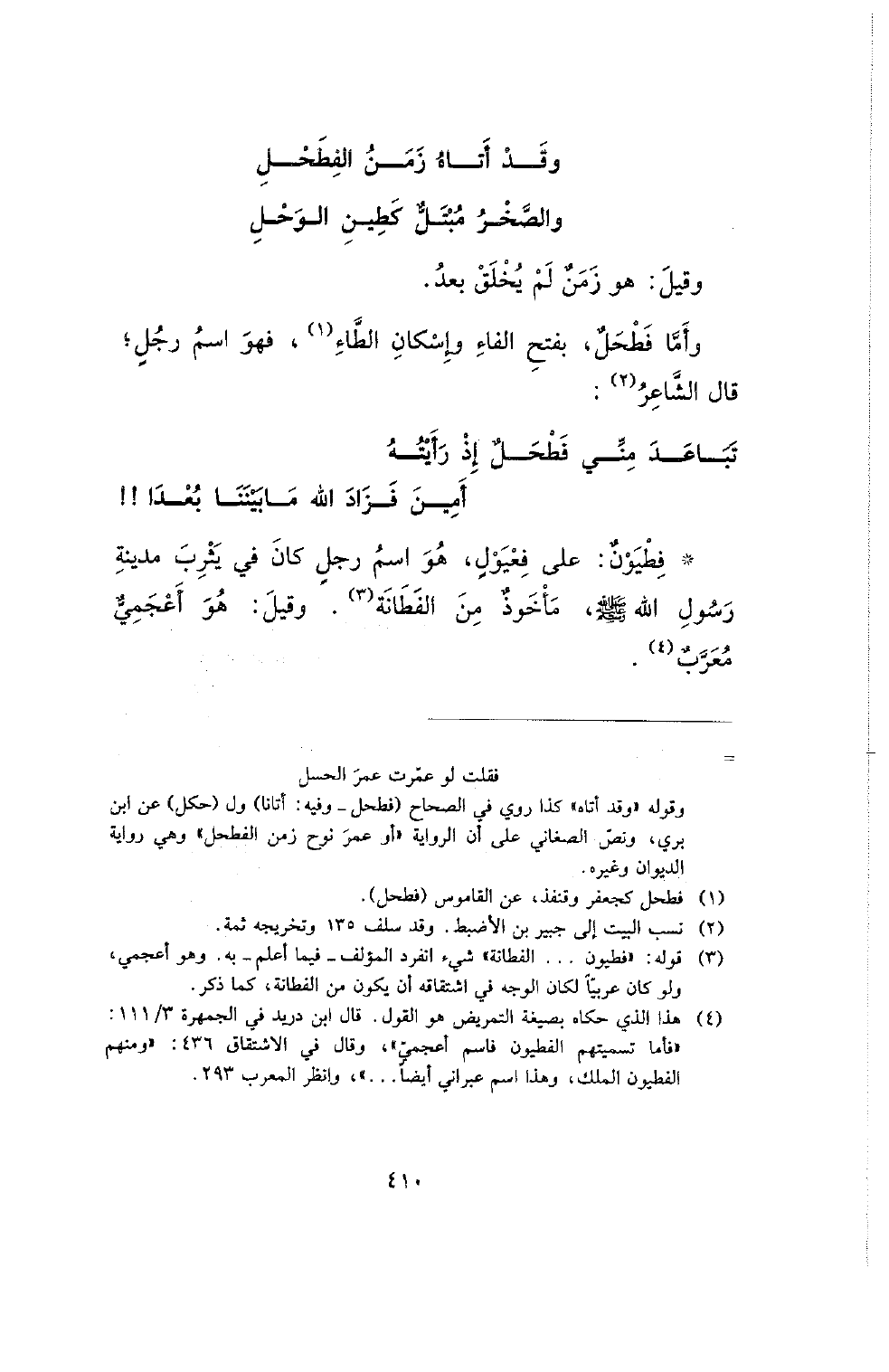 وأما فطحل، بفتح الفاء وإسكان الطاء، فهو اسم رجل؛ قال الشاعر: