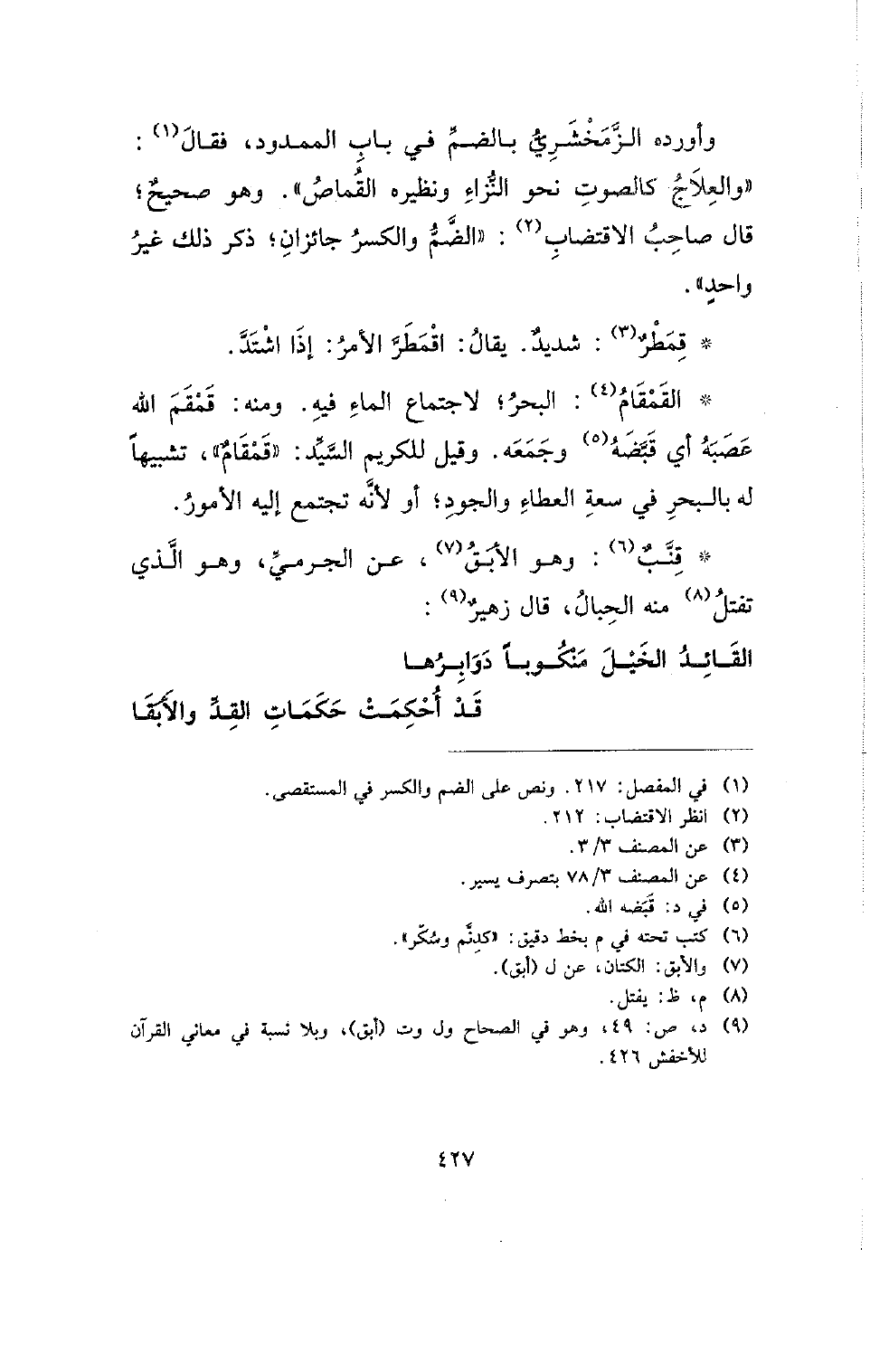 * القمقام: البحر؛ لاجتماع الماء فيه. ومنه: قمقم الله عصبه أي قبضه وجمعه. وقيل للكريم السيد: (قمقام)، تشبيها له بالبحر في سعة العطاء والجود؛ أو لأنه تجتمع إليه الأمور.