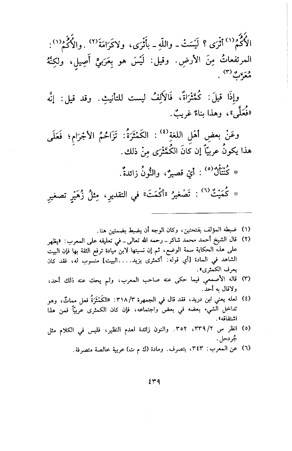 وعن بعض أهل اللغة: الكمثرة: تزاحم الأجرام؛ فعلى هذا يكون عربيا إن كان الكمثرى من ذلك.