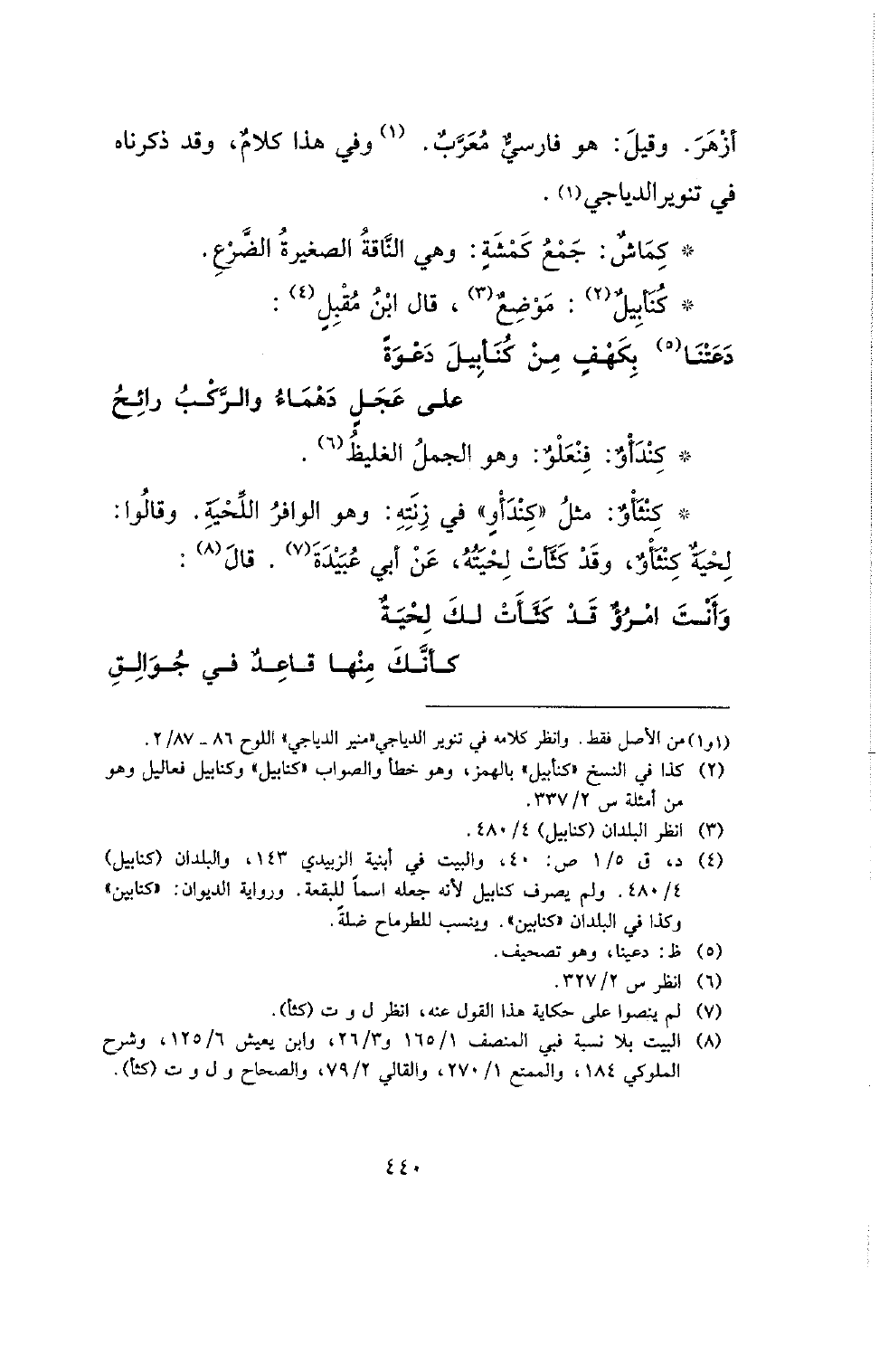 * كندأو: فنعلو: وهو الجمل الغليظ.* كنثأو: مثل (كندأو) في زنته: وهو الوافر اللحية. وقالوا: لحية كنثأو، وقد كثأت لحيته، عن أبي عبيدة قال:
