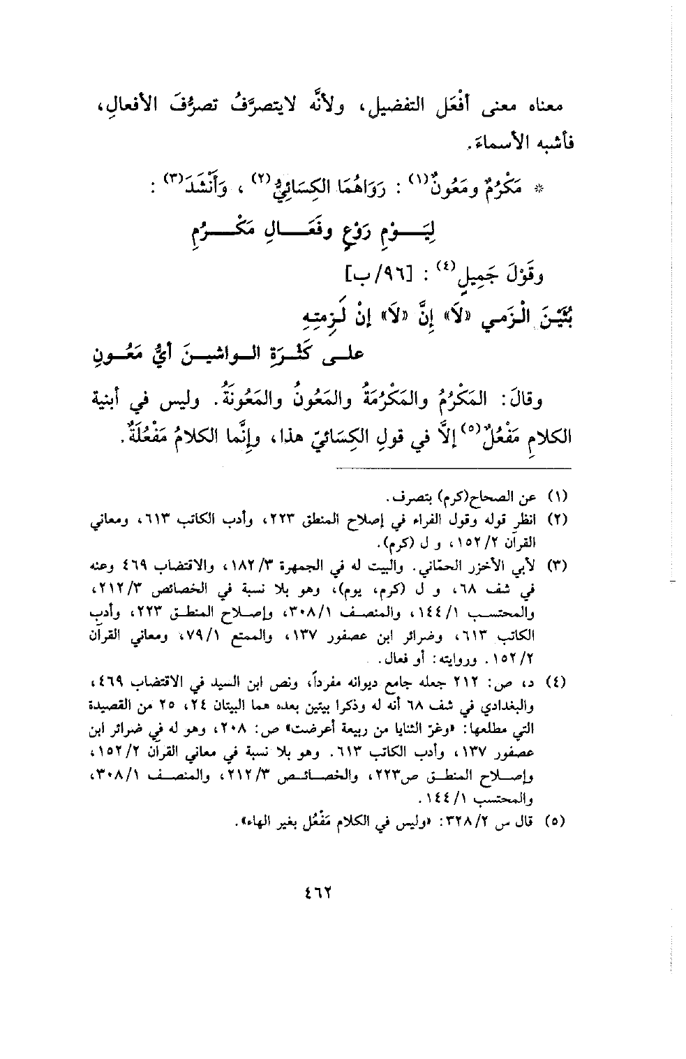 وقال: المكرم والمكرمة والمعون والمعونة. وليس في أبنية الكلام مفعل إلا في قول الكسائي هذا، وإنما الكلام مفعلة.